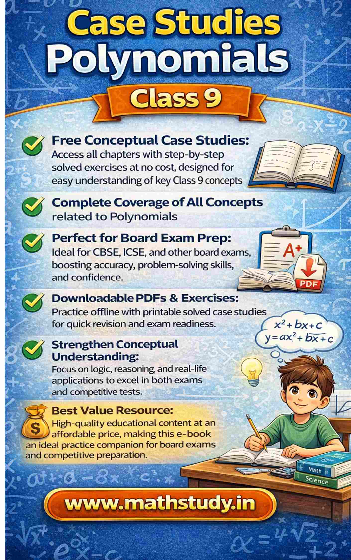 • 10 exam-oriented Polynomials Case Studies for Class 9 Mathematics
