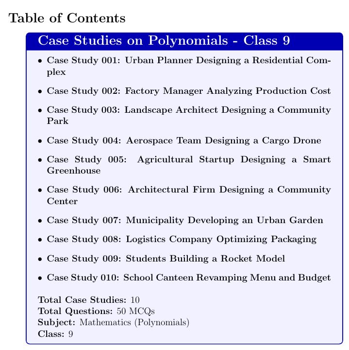 Q6. How many questions are included in these Class 9 Polynomials Case Studies and Polynomials MCQs with Solutions?