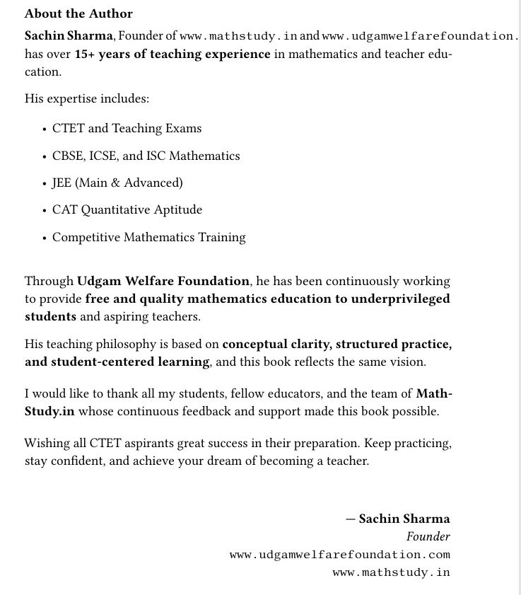 Unlike generic test series, this book is authored by Sachin Sharma – a renowned math educator with decade+ experience coaching students for JEE, SAT, CBSE, and CTET. The 20 fully solved sample papers are meticulously curated, covering the latest exam pattern and NEP-aligned question types. The content is crisp, error-free, and enriched with alternative solving techniques. This math sample papers for CTET pack also supports digital accessibility and provides lifetime value at an affordable price. We guarantee it’s the best resource for CTET exam for Paper I mathematics.