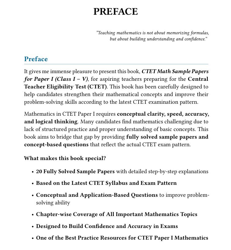 - 20 Full-length CTET Math Sample Papers (Paper I) with detailed answer keys.